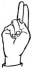 На ћирилици написано МИОДРАГ ЋАЛДОВИЋ састоји се из 15 слова [?]. Исписано ћириличном једноручном азбуком за глувонеме: